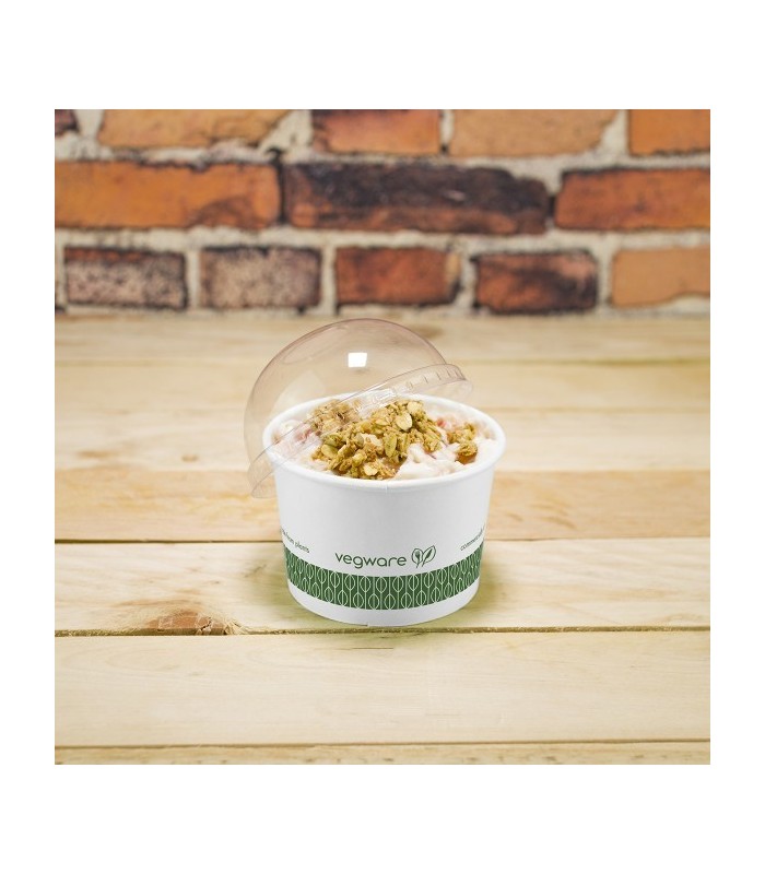 Valorisez vos préparations avec ce couvercle dôme en PLA transparent, parfaitement adapté aux pots à soupe et desserts de la série ø 90mm. Sa forme bombée est idéale pour les garnitures généreuses de glaces ou de salades froides, offrant une visibilité cristalline. Entièrement conçu à partir de plantes, ce couvercle robuste est certifié pour le compostage industriel.