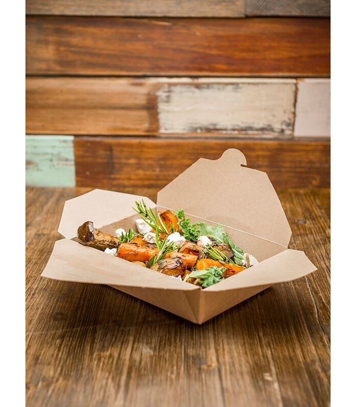 Nos boîtes alimentaires sont les récipients parfaits pour vos services de vente à emporter. La boîte alimentaire n°2 offre un format idéal pour le conditionnement de vos plats d'accompagnement, tels que le riz et les pâtes, ou pour vos créations sucrées comme les petites tartes et les brownies au chocolat. Alliez esthétique et responsabilité environnementale pour valoriser vos préparations culinaires auprès d'une clientèle exigeante.