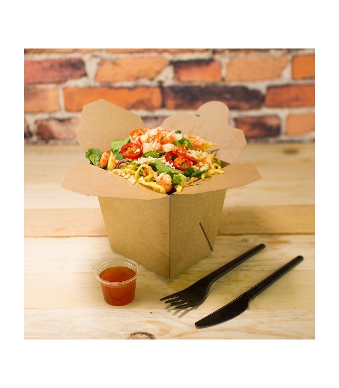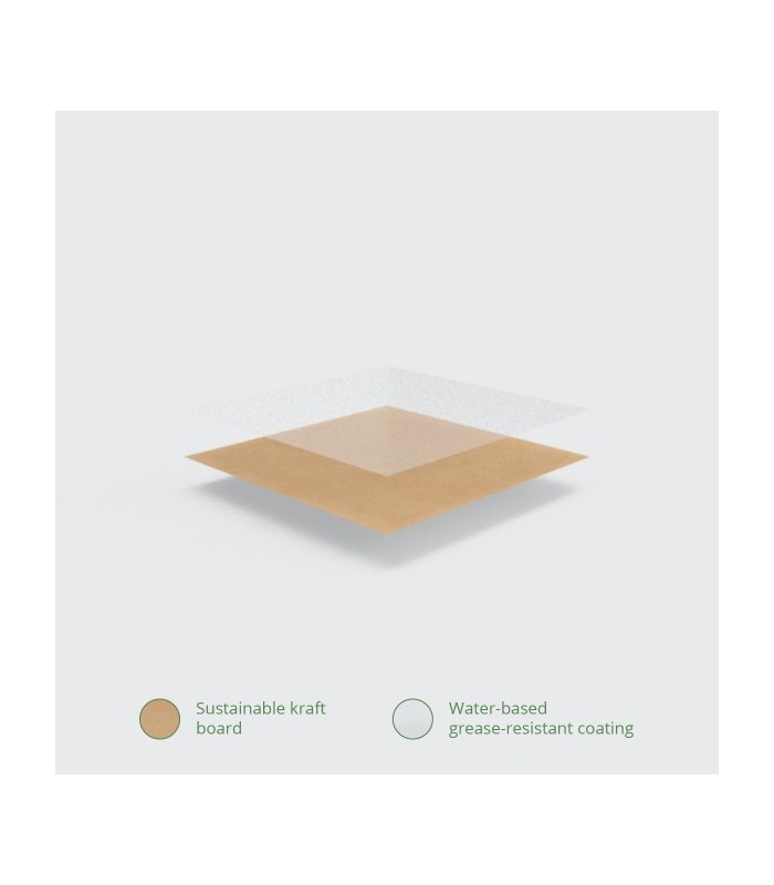 Fabriquée en kraft écologique, elle intègre un revêtement interne en amidon de maïs (PLA) qui la rend totalement imperméable, même pour les plats en sauce les plus exigeants. Cette solution de packaging allie robustesse et respect de l'environnement : elle est 100% compostable et jetable sans impact écologique majeur.