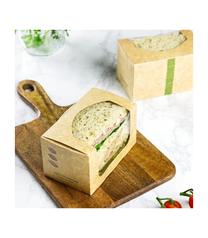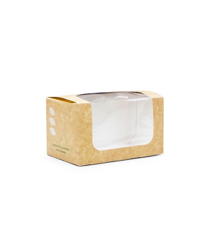 Valorisez la fraîcheur de vos préparations avec notre boîte à sandwich rectangulaire jetable, une solution de packaging qui allie parfaitement visibilité et écoresponsabilité. Fabriqué en carton recyclé doublé en PLA, ce contenant assure une excellente protection contre l'humidité tout en préservant le croustillant de vos pains. Sa fenêtre transparente en PLA offre une vue sur vos recettes, facilitant le choix de vos clients en vitrine.