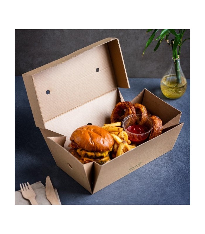 Offrez une expérience de dégustation supérieure avec notre boîte repas pliable haut de gamme, spécialement conçue pour les hamburgers généreux et gourmets. Ses dimensions confortables permettent d'accueillir vos plus belles créations. Sa conception ingénieuse est un véritable atout client : la boîte se déplie pour se transformer en une assiette pratique, idéale pour un déjeuner nomade tout confort.