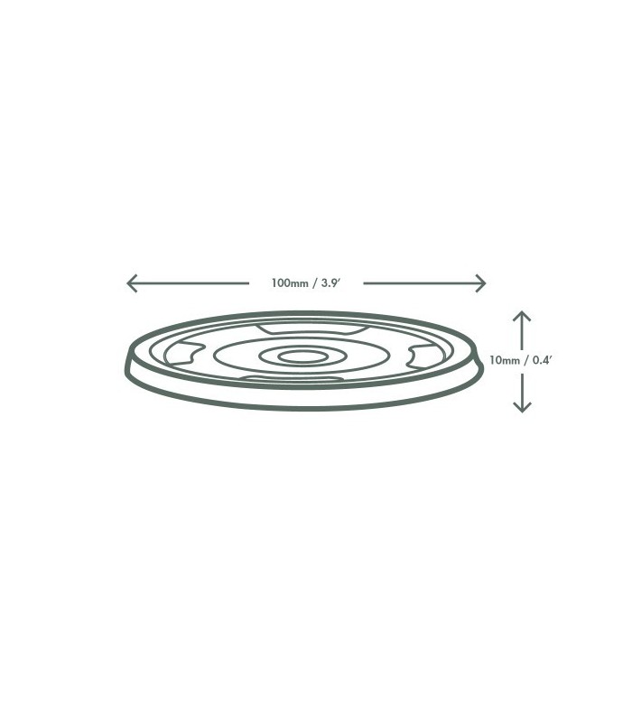 Optimisez vos boissons à emporter avec ce couvercle plat de 96 mm de diamètre, conçu en PLA 100% biosourcé. Doté d'un trou central prédécoupé pour l'insertion facile d'une paille, ce couvercle garantit une fermeture hermétique et sécurisée pour éviter toute éclaboussure.