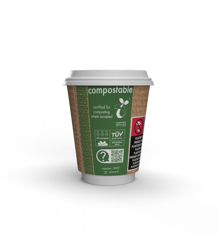 Optimisez votre service de vente à emporter avec ce gobelet double paroi en kraft, spécialement conçu pour les couvercles de la série 79mm. Ce gobelet écologique allie carton durable et doublure en PLA biosourcé pour une isolation thermique parfaite de vos cafés, thés et soupes.