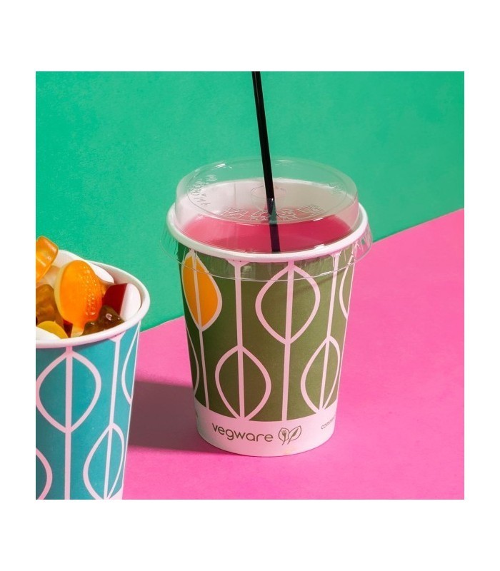 Sécurisez vos boissons nomades avec le couvercle plat, un standard de qualité pour la vente à emporter écoresponsable. Doté d'une fente en "C" précise pour l'insertion de la paille, il assure une fermeture hermétique tout en limitant les risques d'éclaboussures. Ce couvercle est fabriqué à partir de PLA, un matériau 100% renouvelable et conçu pour le compostage industriel.