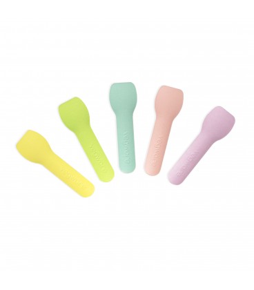 Cuillères à glace tutti frutti. Parfaites pour les glaces, les sorbets, les yaourts et bien plus encore. Chaque paquet contient toutes les couleurs : rose, violet, bleu, vert et jaune