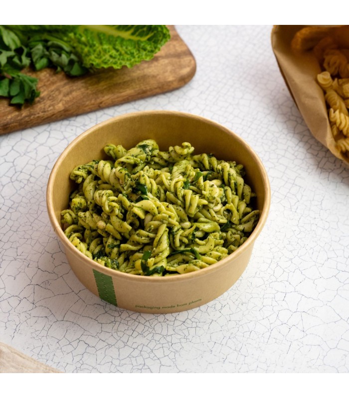 Fabriqué en carton kraft, ce bol se distingue par une doublure à base d’eau, offrant une barrière étanche sans film plastique traditionnel. Conçu exclusivement à partir de plantes, ce bol est certifié pour le compostage industriel et reste entièrement recyclable. Compatible avec tous les couvercles de la série 150mm de diamètre, il assure un service rapide et une fermeture sécurisée pour la livraison.