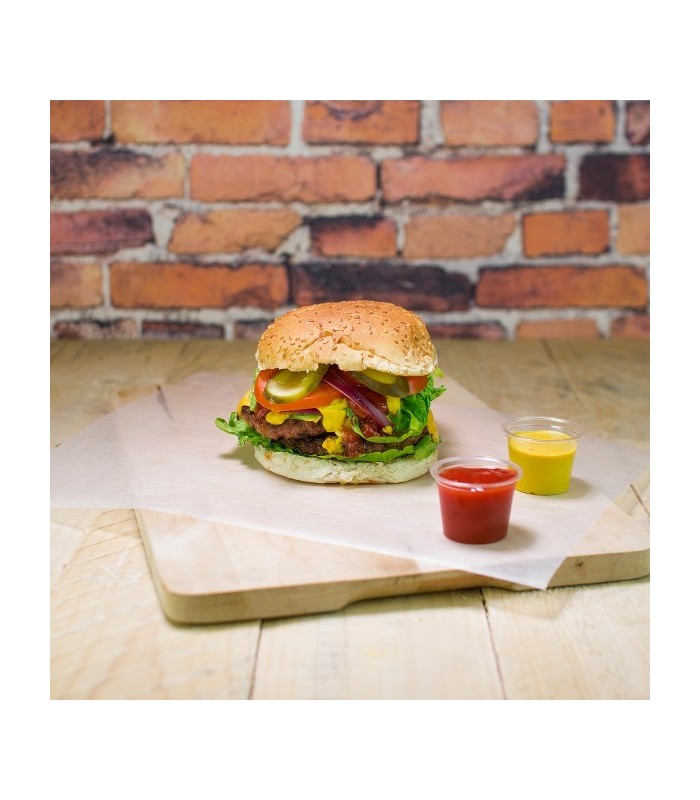 Sublimez vos burgers tout en préservant leur gourmandise avec notre papier d'emballage déperlant et biodégradable. Conçu spécifiquement pour la vente à emporter, ce papier technique est doté d'un enduit en cire 100 % végétale, garantissant une barrière efficace contre les graisses et les sauces sans altérer le croustillant du pain. Plus qu'un simple emballage, c'est une solution économique et écologique : contrairement aux papiers paraffinés classiques, il est entièrement compostable et se transforme en engrais naturel une fois jeté.